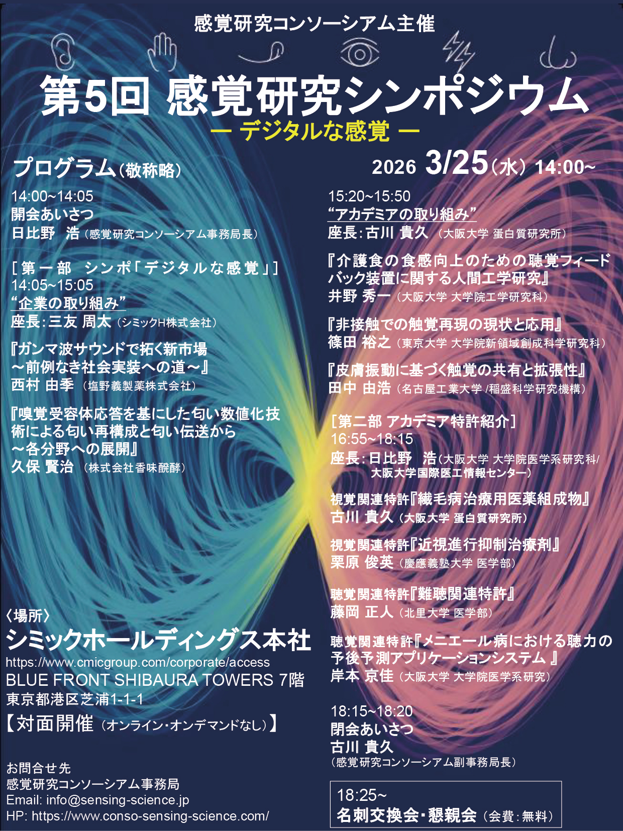 感覚研究コンソーシアムが主催する「第5回 感覚研究シンポジウム」に
